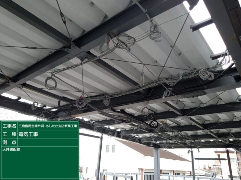 主な作業として電気・機械設備工事では天井裏の配線配管を行い、外壁工事では外壁を張る為の下地取付を行いました。機械基礎等の躯体工事も行いました。各作業を安全かつスムーズな施工及び近隣の方々の協力により、順調に工事が進んでいます。