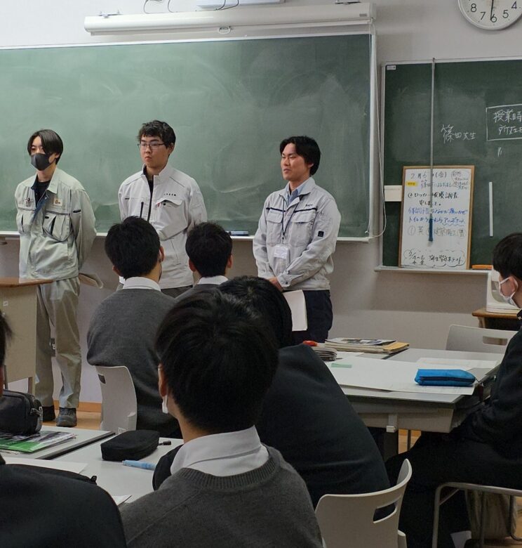 人前で仕事について話す機会をいただいたことで、私たちも建設業に対する思いややりがいを再確認する場にもなり、とても刺激を受けた授業でした。